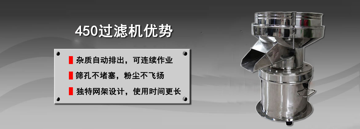 【產(chǎn)品介紹】:450過(guò)濾機(jī)是一種便于移動(dòng)、高效率、低噪音、小體積的小型振動(dòng)篩分過(guò)濾機(jī).尤其適用于大顆粒含量的粉末篩分與漿液過(guò)濾。