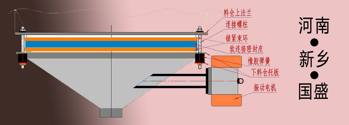 首先,先把固定斗用螺栓固定在儲料倉下部的法蘭上,再將振動料斗用減振裝置吊掛在固定斗下方。固定斗下平面和振動料斗上平面之間的縫隙用橡膠套密封。注意振動料斗出料口和受料口間須留10-20mm間隙。